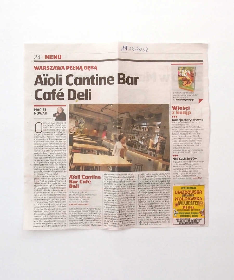 Aioli Cantine & Deli Bar zbiera świetne recenzje. Nasze wnętrze sprzyja spotkaniom, przygodom kulinarnym czy zabawie. Podzieliliśmy wnętrze na kilka stref. Każda część restauracji / sklepu dedykowana jest innym funkcjom i ma różne cechy, dzięki czemu idealnie spełnia potrzeby użytkowników. Pozytywne opinie redaktora Macieja Nowaka z Gazety są dla nas mega wyróżnieniem i nagrodą za ogromną pracę architektów, meblarzy, instalatorów, ekip budowlanych.